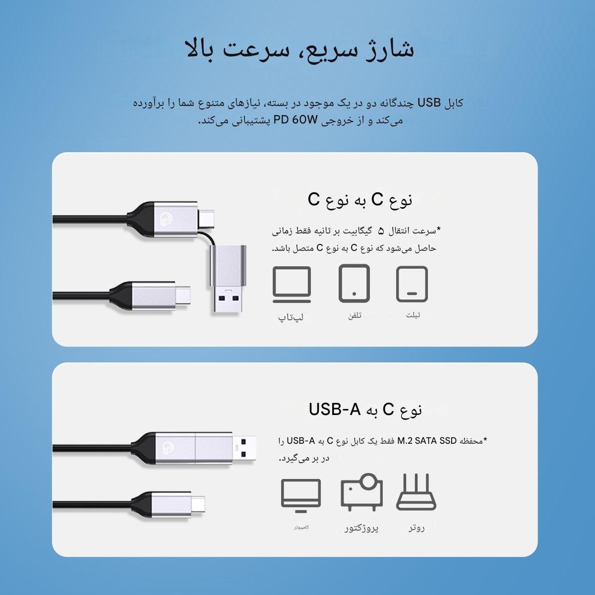 | طول کابل/ نوع کابل | (PD60W)USB-C To USB-C-A /1M |