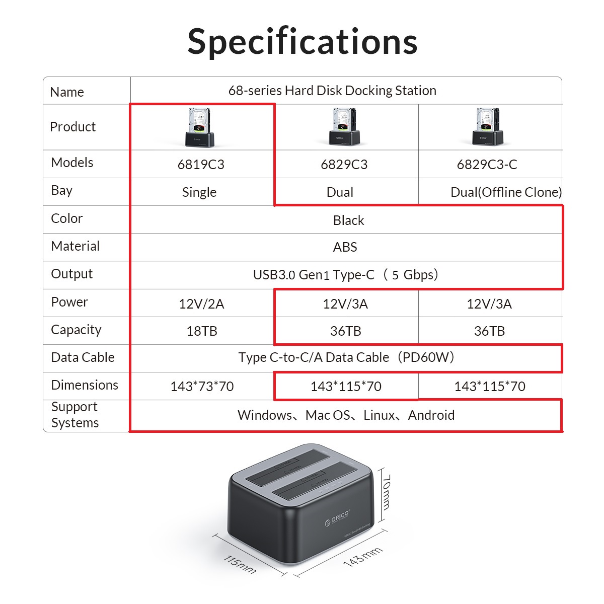 مشخصات فنی ORICO-6819C3-V1