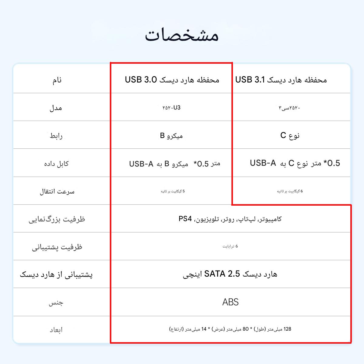 جنس بدنه: پلاستیک ABS با کیفیت بالا، طراحی مقاوم در برابر ضربه و با قابلیت دفع حرارت مناسب برای حفظ دمای مطلوب هارد دیسک.