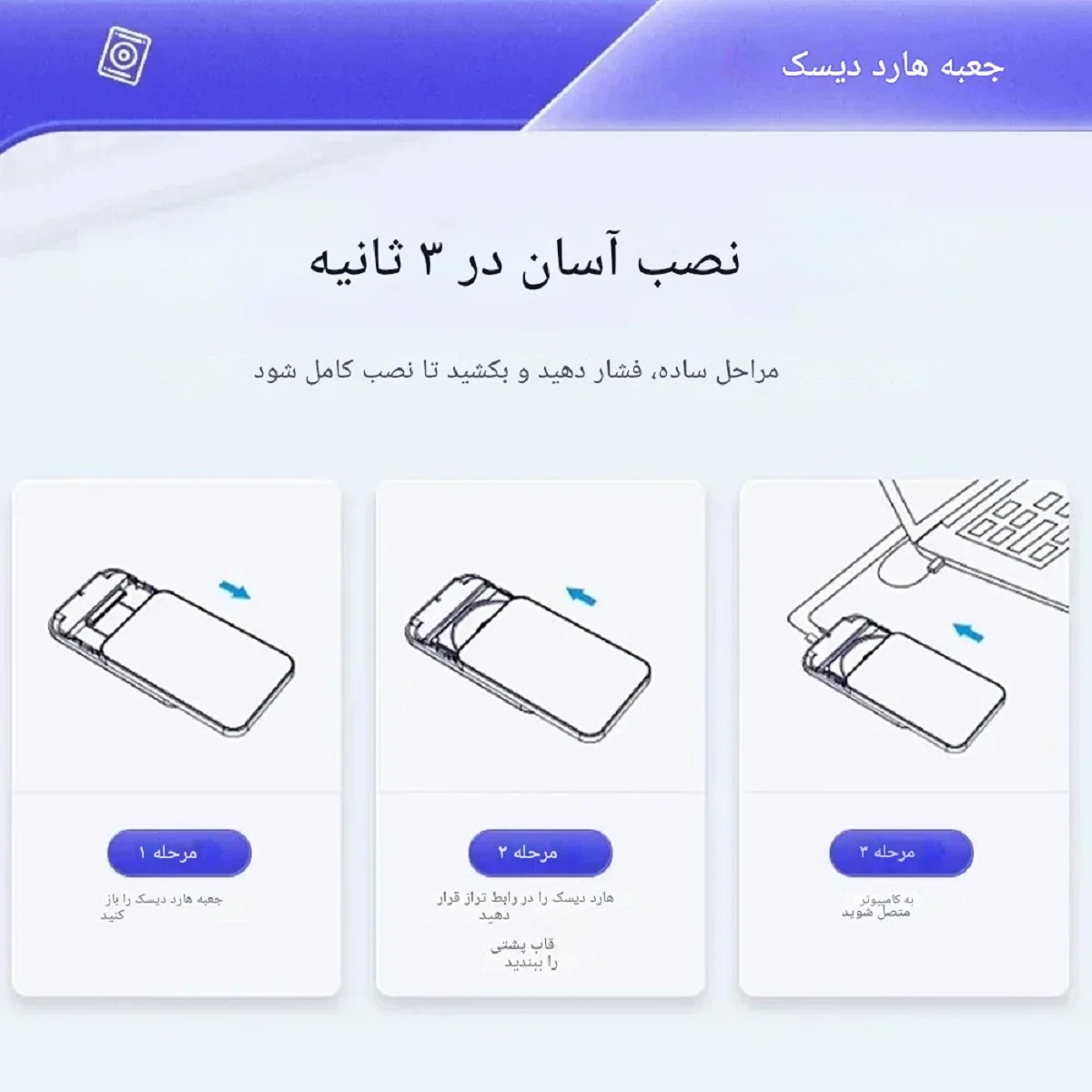 نصب آسان و بدون ابزار: با طراحی Tool-Free، کاربر میتواند در چند ثانیه هارد یا اساسدی را داخل باکس قرار دهد؛ این موضوع مخصوصاً برای کسانی که هارد قدیمی دارند و میخواهند آن را به حافظهی قابل حمل تبدیل کنند، بسیار مفید است.