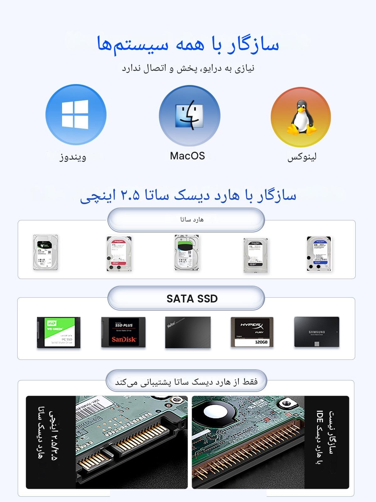 سازگار:با SSD- HDD سایز 3.5 و 2.5 اینچ