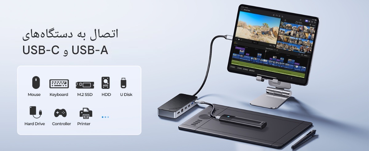 این داک چندمنظوره با طراحی جمعوجور اما کاربردی، امکانات زیر را ارائه میدهد: