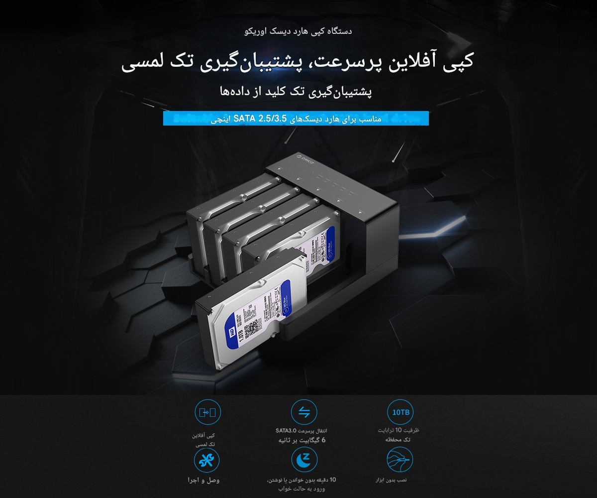 یکی از مهمترین قابلیتهای ORICO-6558US3-C، پشتیبانی از کلون آفلاین (Offline Clone) است؛ یعنی بدون نیاز به کامپیوتر نیز میتوانید اطلاعات یک هارد را مستقیم به هارد دیگر منتقل کنید. این قابلیت، این مدل را به گزینهای ایدهآل برای تعمیرکاران، شرکتها، مراکز داده، آرشیویستها و کاربران حرفهای تبدیل کرده است.
