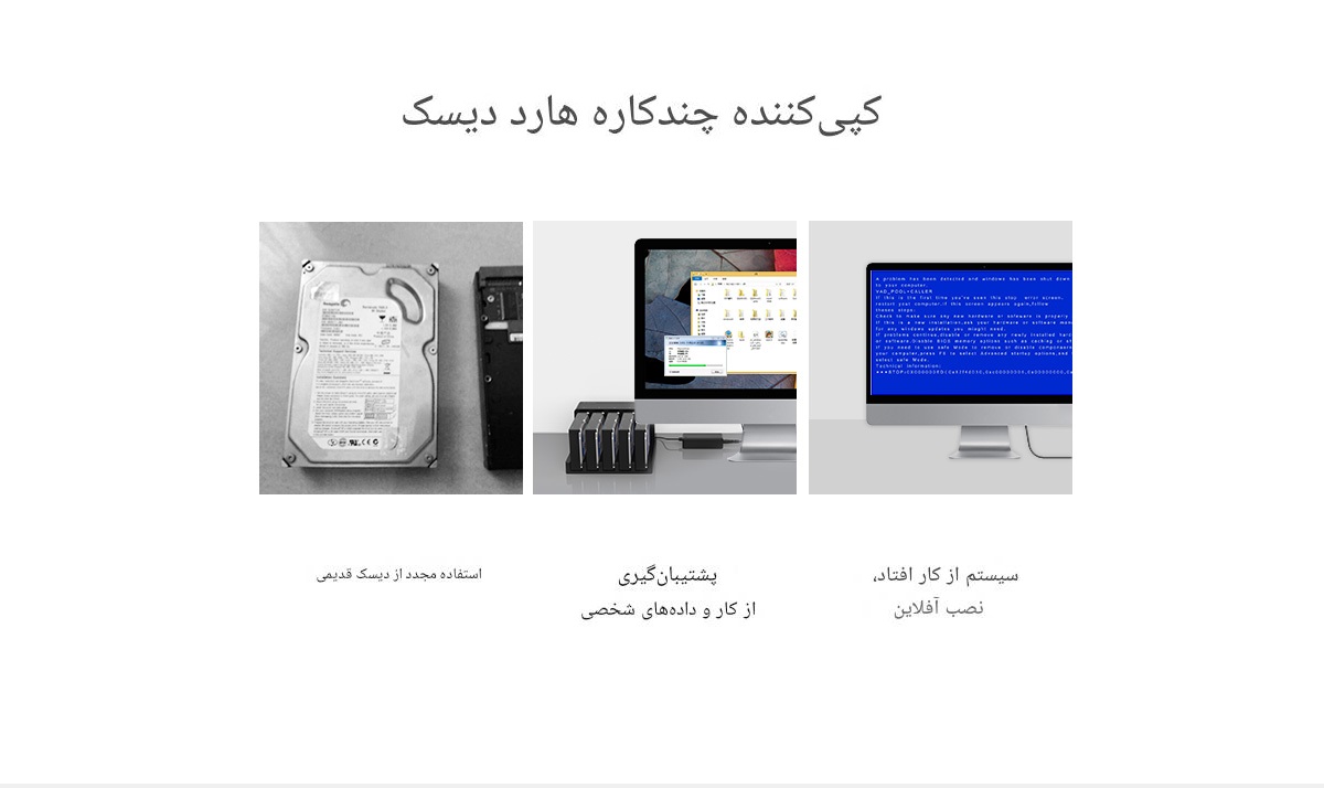 کاربرد: بکاپگیری، انتقال اطلاعات، تست هارد، بازیابی داده