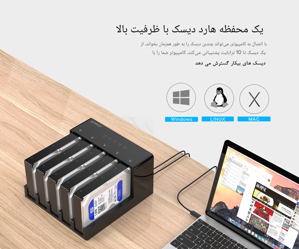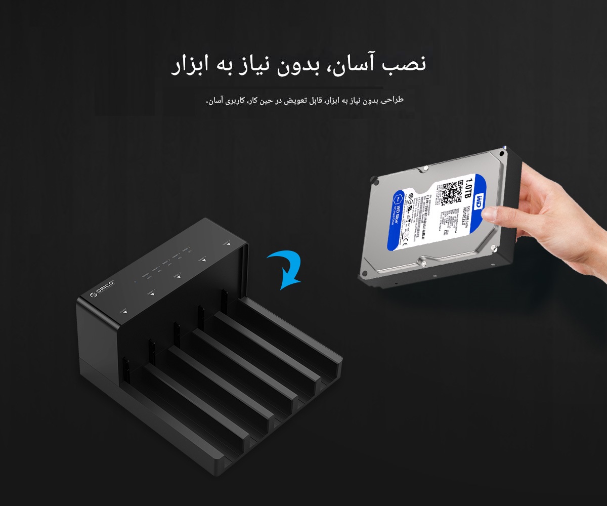 داک هارد ORICO-6558US3-C یکی از حرفهایترین داکهای پنج درگاه برند معتبر ORICO است که برای اتصال همزمان دو تا پنج هارد 2.5 اینچی و 3.5 اینچی SATA به کامپیوتر و لپتاپ طراحی شده است. بر اساس اطلاعات درجشده در سایت رسمی www.orico.cc، این محصول از رابط پرسرعت USB 3.0 بهره میبرد و امکان انتقال داده تا سرعت 5 گیگابیت بر ثانیه را فراهم میکند.