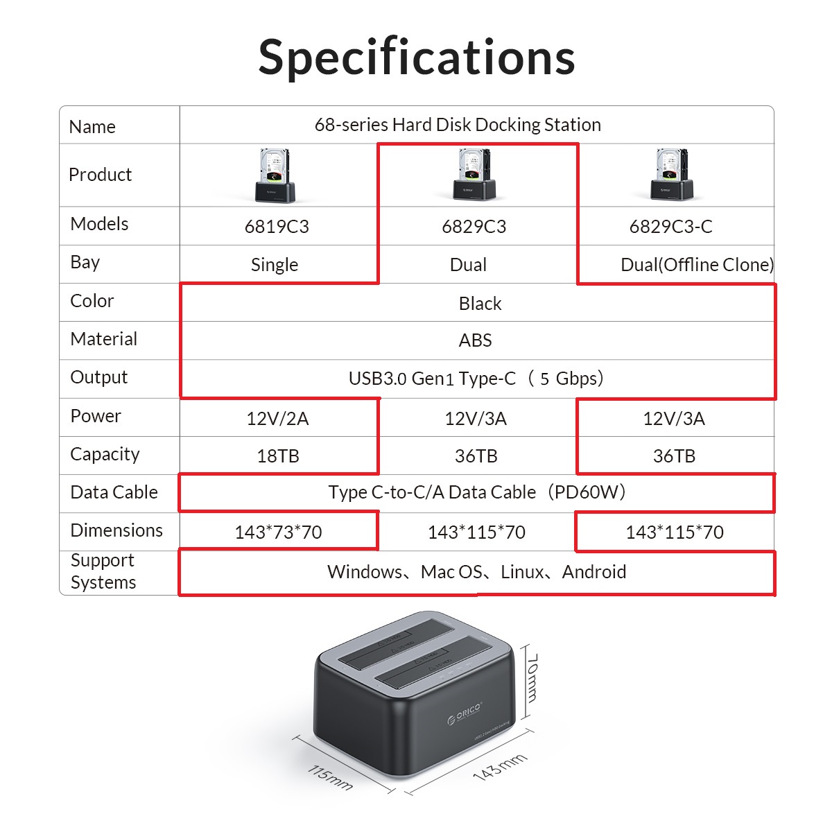 مشخصات فنی ORICO-6829C3