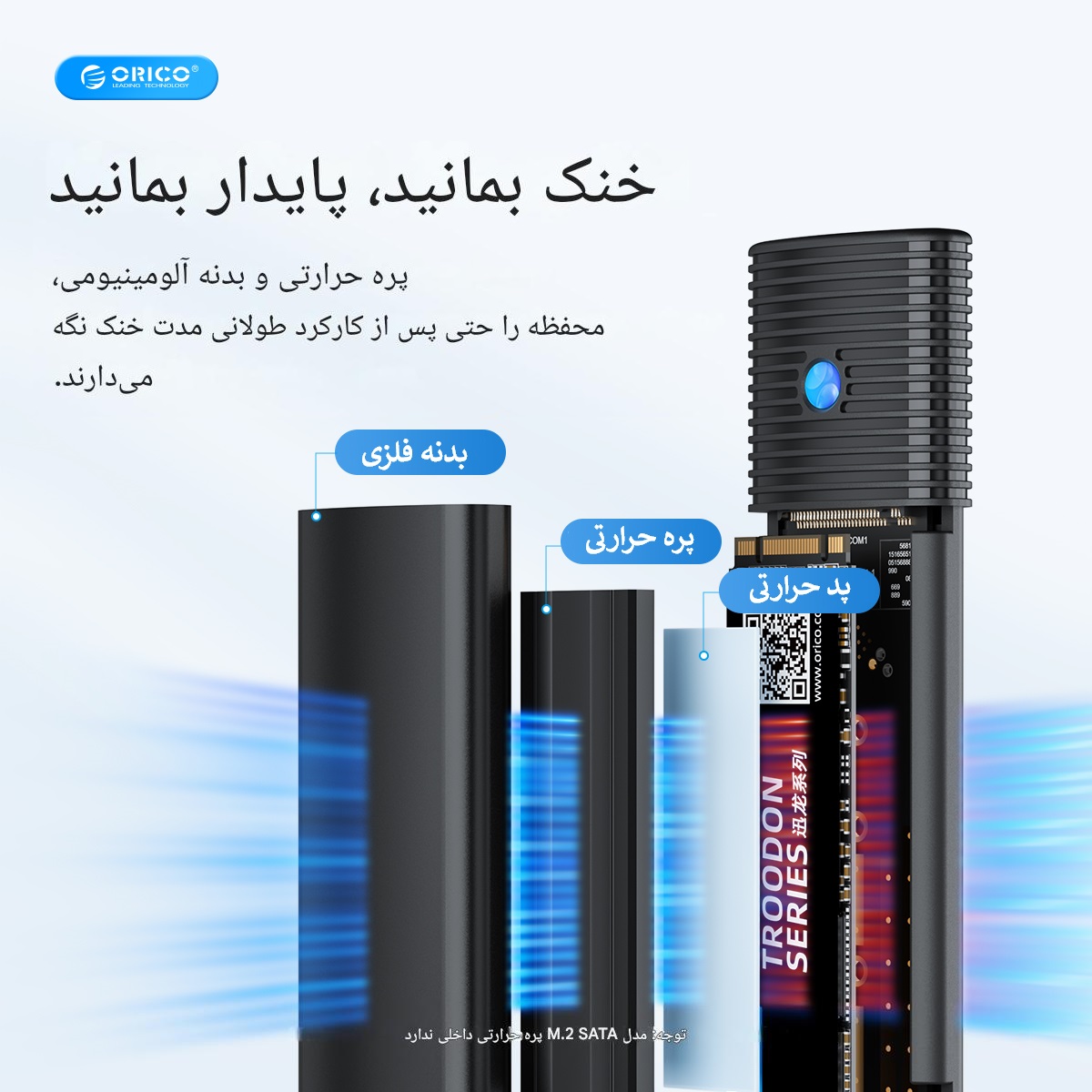 کنترل دما و تهویه: اگر قرار است برای انتقال یا بکاپ مداوم استفاده شود، توصیه میشود محفظه در محل تهویه مناسب باشد تا دمای آن بالا نرود؛ هرچند ORICO PWM2-G2 دارای فین حرارتی است.