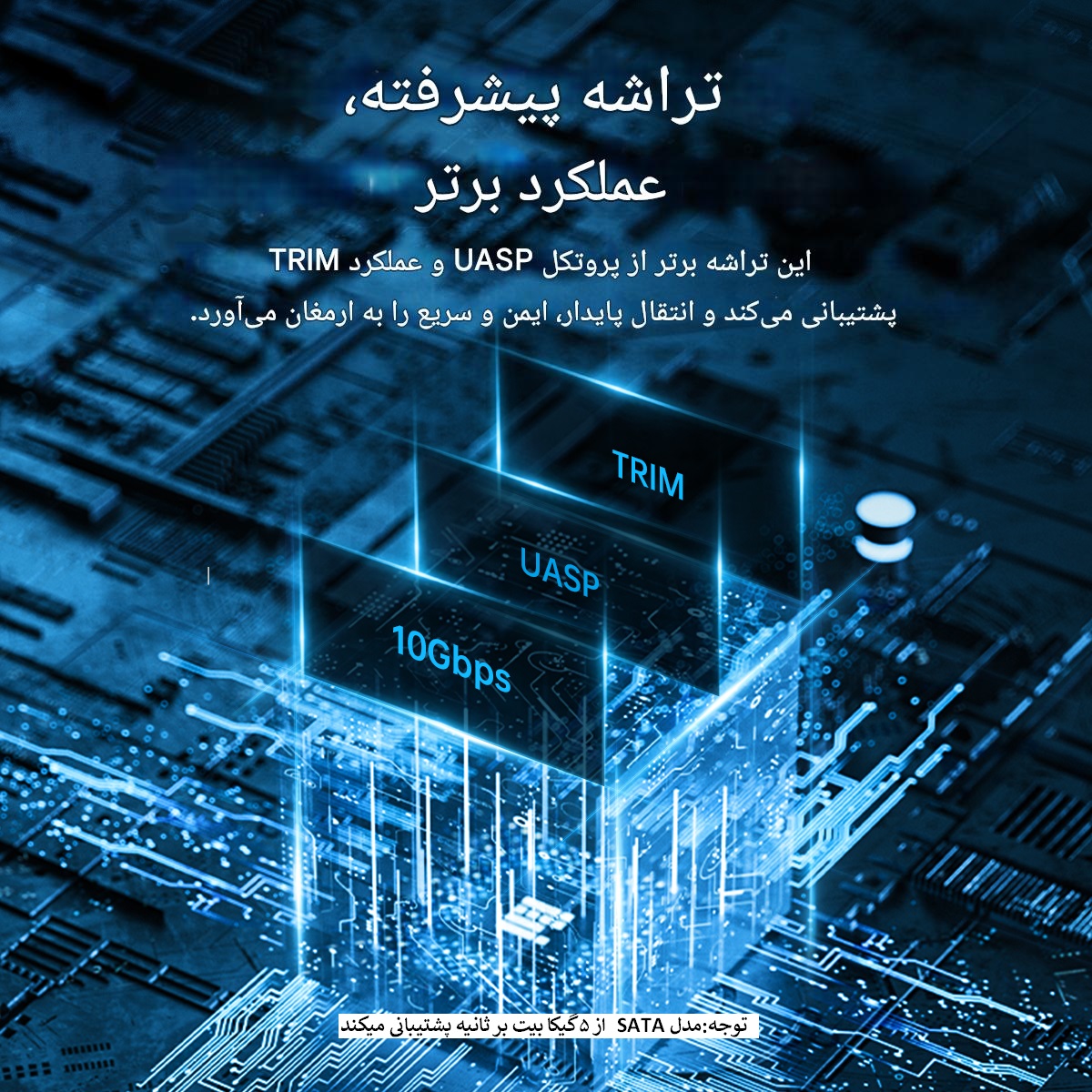افزایش سرعت انتقال دادهها: با پشتیبانی از USB 3.2 Gen2 و سرعت تا 10 Gbps، انتقال فایلهای حجیم مانند ویدیوها، بکاپها، آرشیوها بسیار سریعتر انجام میشود.