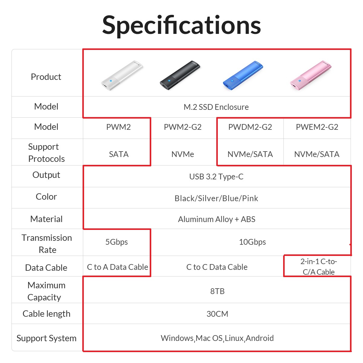 در جدول زیر مشخصات فنی ORICO PWM2-G2 را مشاهده میکنید: